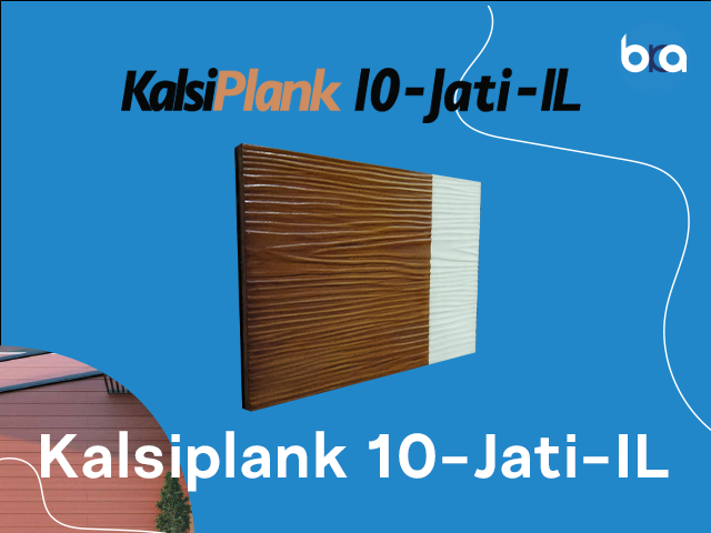 KalsiPlank 10 Jati-IL adalah papan dekoratif untuk pelapis dinding luar dengan ketebalan 10 mm sebagai lapisan dinding luar dan dekorasi dinding dalam memiliki fitur profil interlocking khusus yang artistik dan berfungsi juga sebagai tali air.